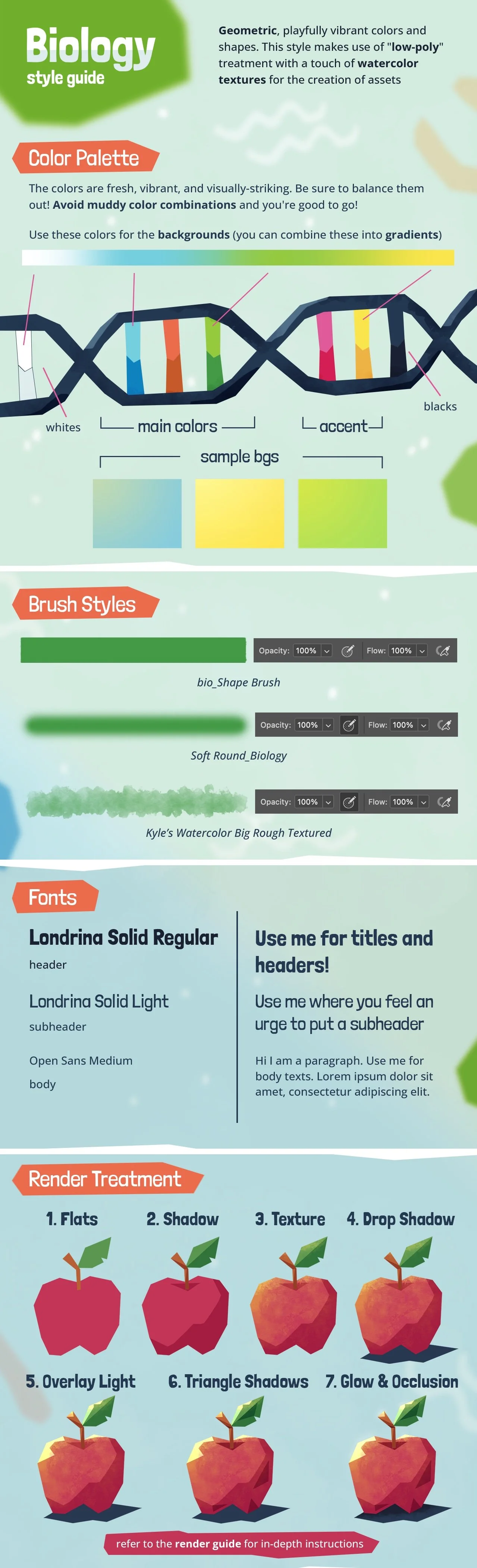 This style guide outlines the visual direction I helped shape for the media assets for our biology course. The design reflects a blend of precision and naturalism.